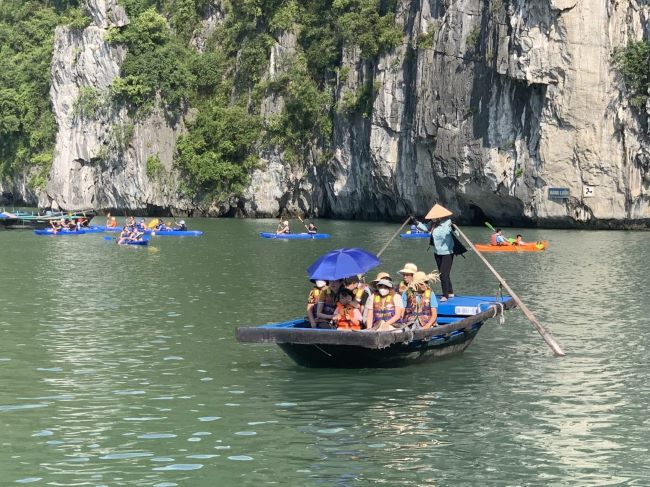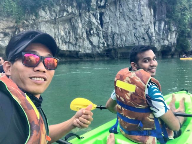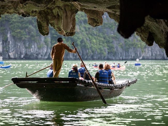 - 14:45 Do kayaking or bamboo boat through Luon Cave to discover the beautiful lagoon.