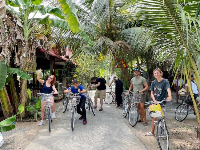 - Highlight of the trip - take the rowing boat, which the local people paddle on the gorgeous coconut canal in Ben Tre. Cycling (taking Tuk-tuk is optional) through the coconut grove of the village to see how the locals make sleeping mats.